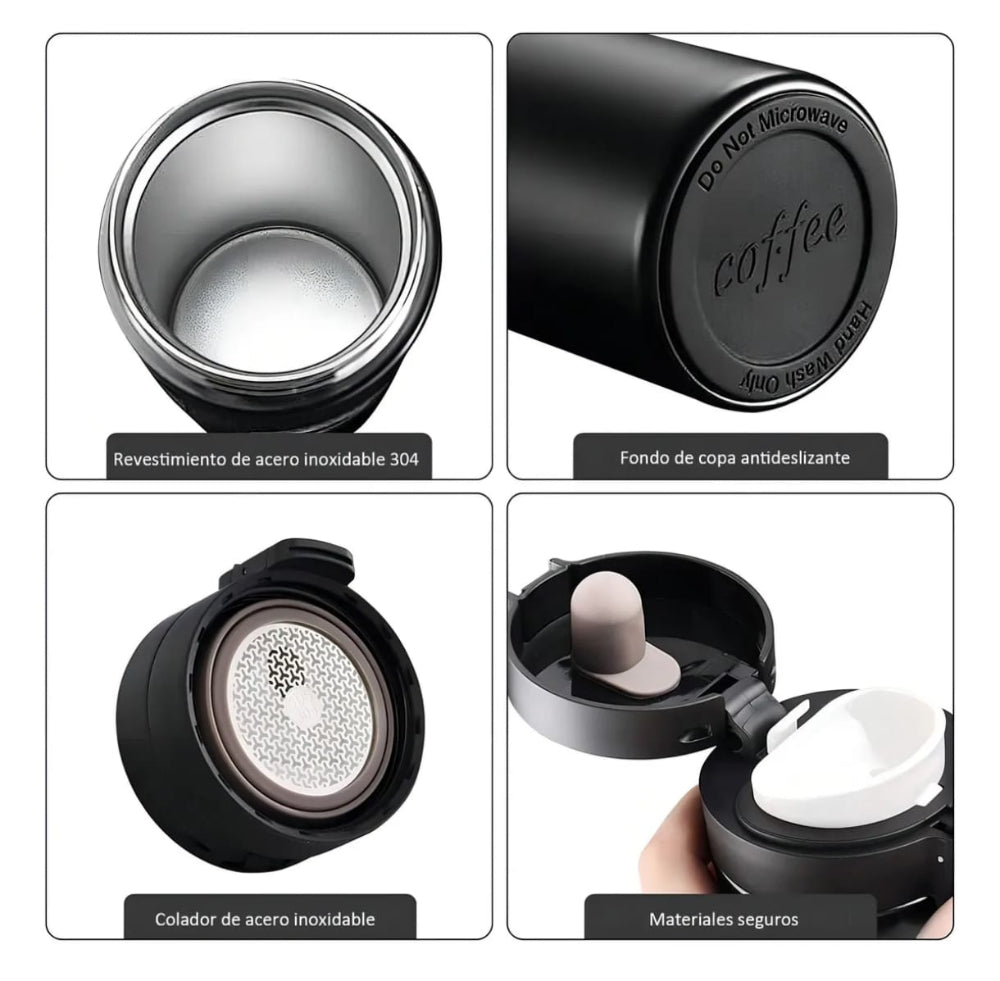 Cuenta con una capacidad de 380 ml, ideal para llevar café, té u otras bebidas calientes o frías. Perfecto para el uso diario en la oficina, universidad o viajes.